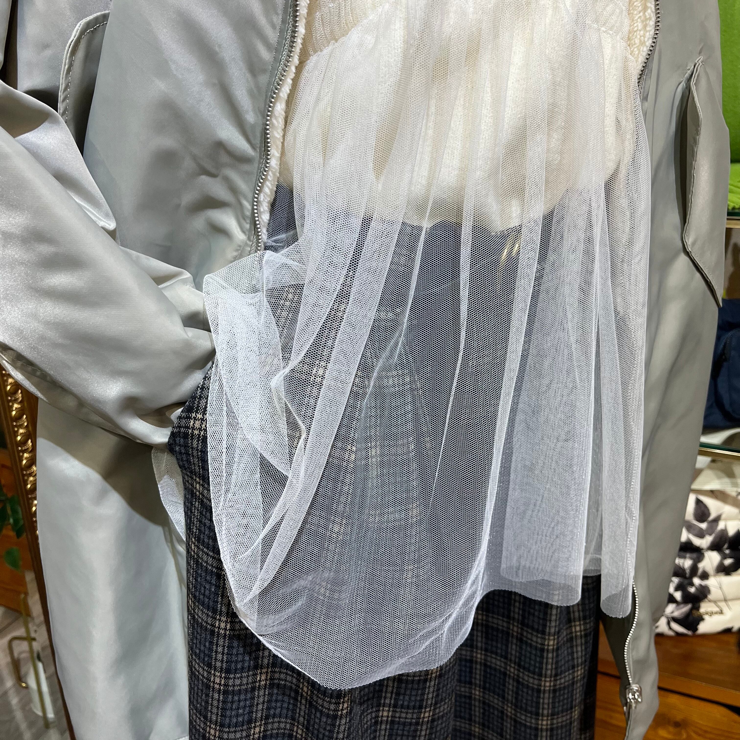 身幅がしっかりあるので、チュールの可愛らしい雰囲気がありつつ、ゆったりとしたカジュアルなコーディネートにもおすすめです。